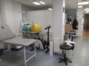 - Amplia sala de rehabilitación con 5 cabinas de tratamiento y zona abierta para varios pacientes